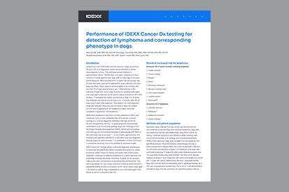 IDEXX Cancer Dx testing provides accurate detection of biomarkers specific for lymphoma in canine serum and whole blood. B-cell vs. T-cell phenotype classification will be provided with positive results as available at no additional cost.